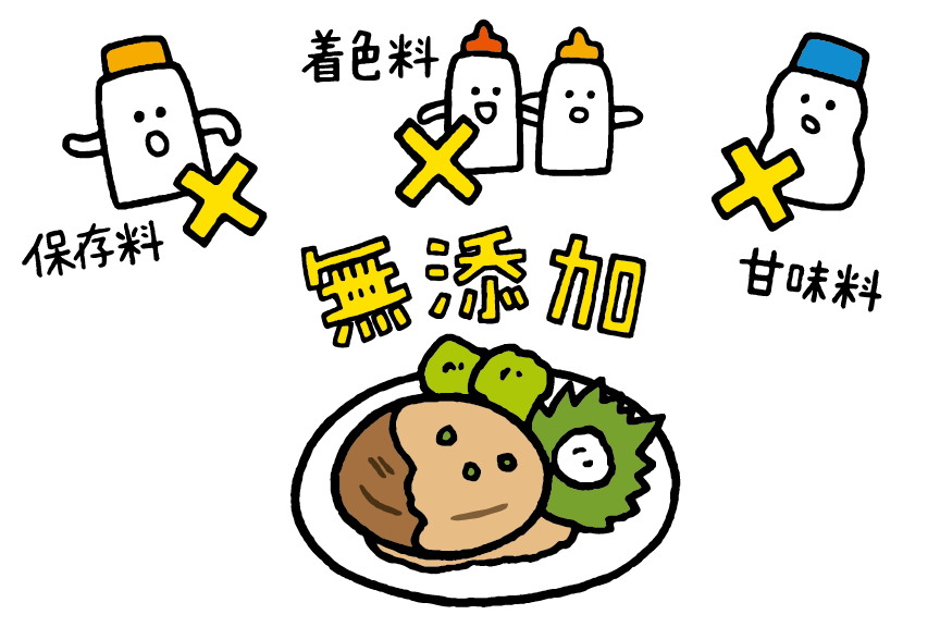 素材本来の味を大切にした、安心安全な食事。保存料・着色料・人工甘味料・発色剤が無添加