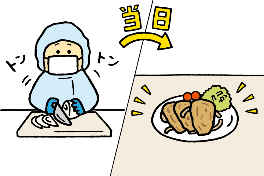 忙しい毎日でも、家族には新鮮でおいしい食事を。だからこそ当日調理した夜ごはんだけをお届けしています
